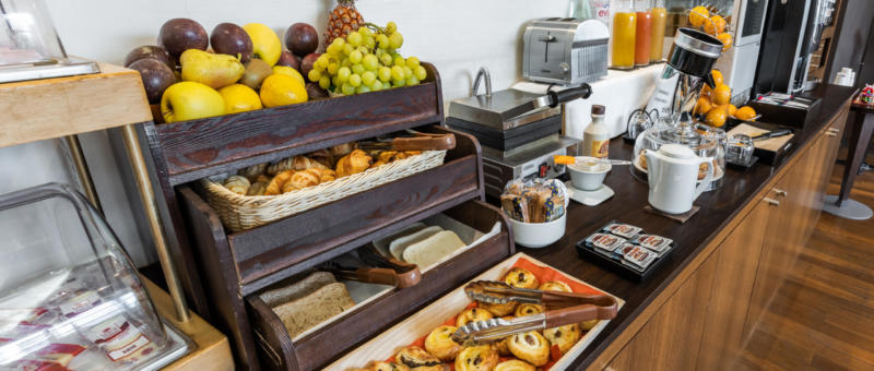 À votre réveil, un petit-déjeuner continental et américain vous est proposé en roomservice. Pour le repas du midi et du soir nous vous proposons des plats savoureux à déguster également en chambre.